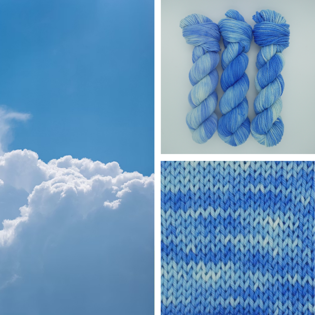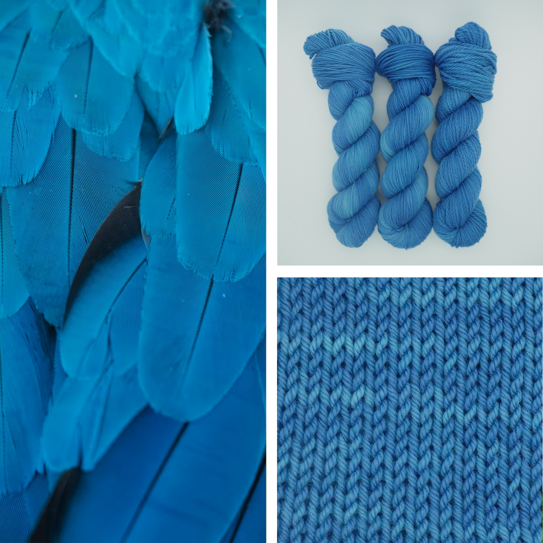 Capture the striking brilliance of bright sky blues layered with rich tonal depth, just like the vivid feathers of the Blue Jay. This colorway blends crisp, saturated turquoise with softer, misty blue undertones, creating a dynamic yet balanced palette.
