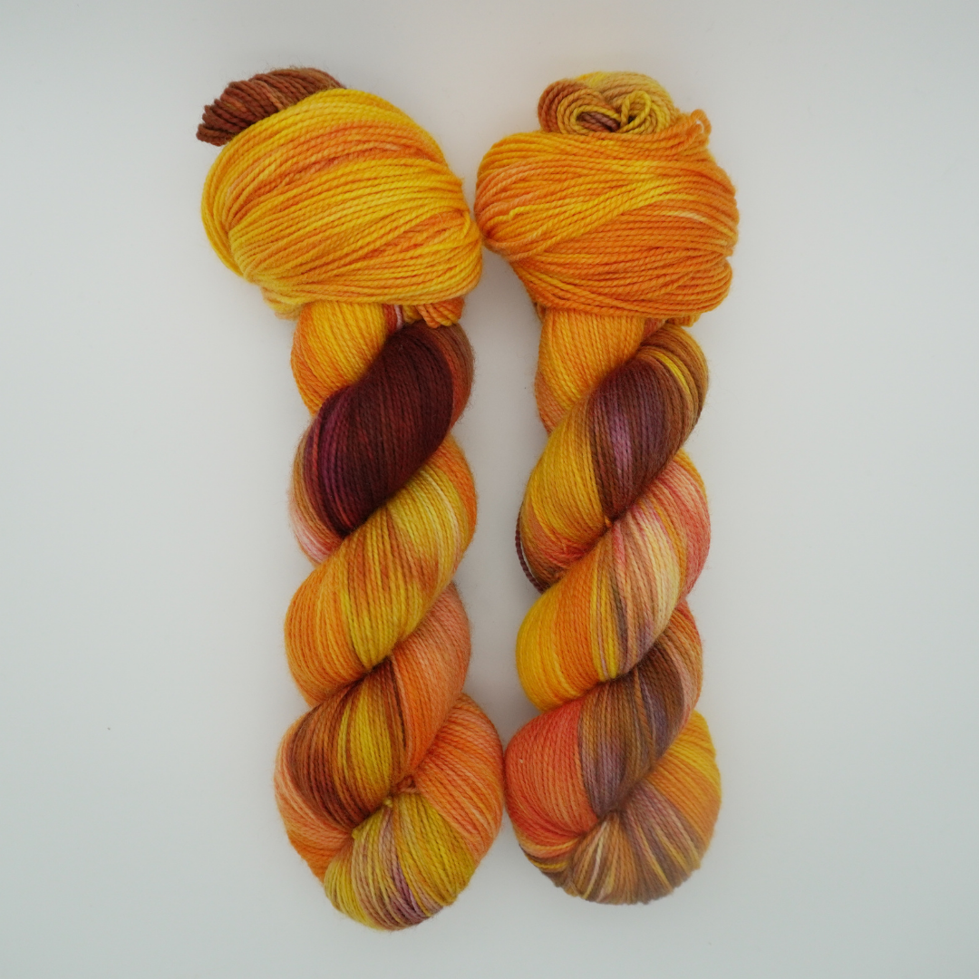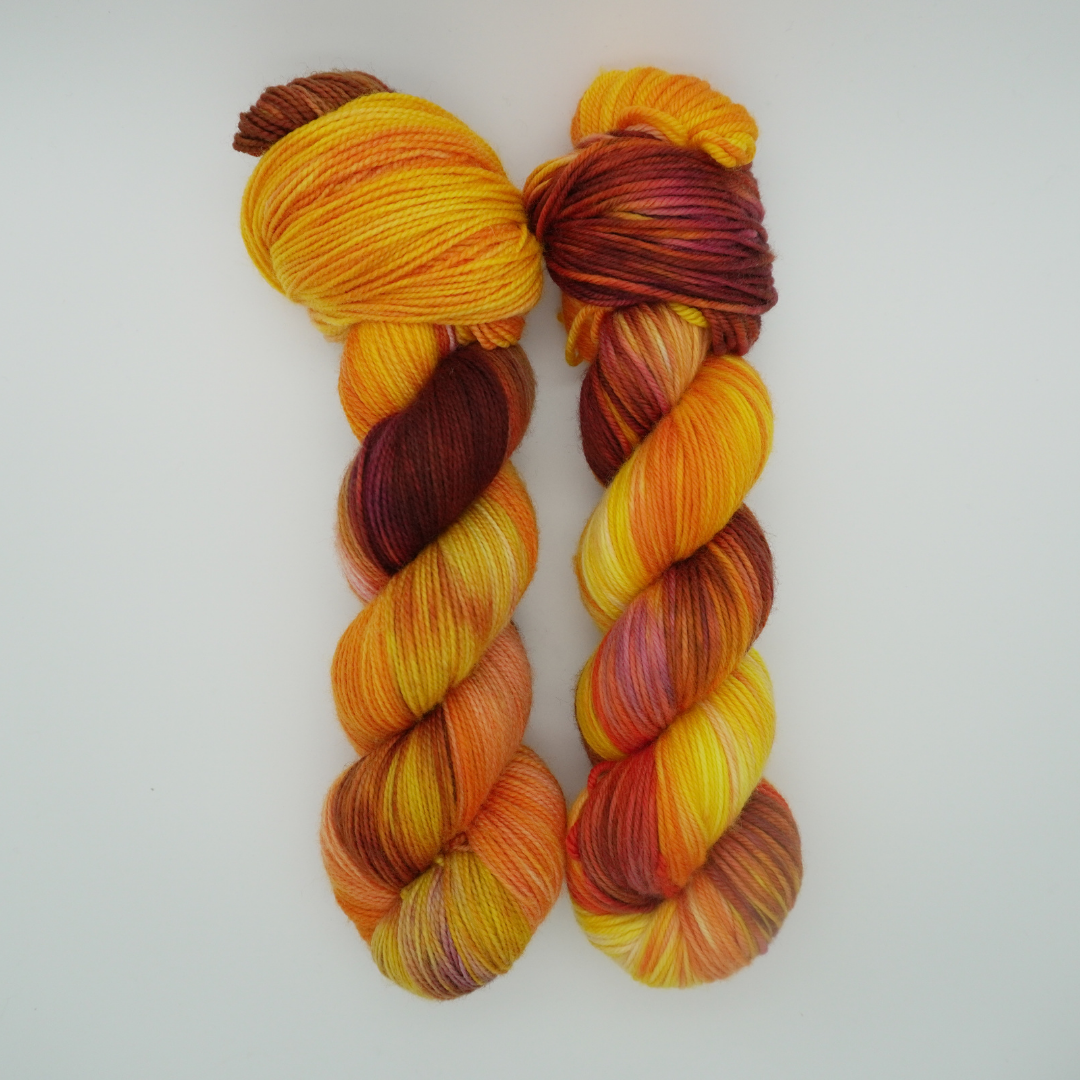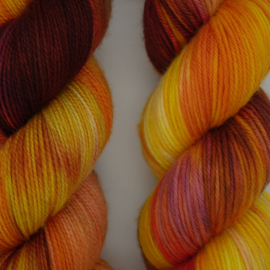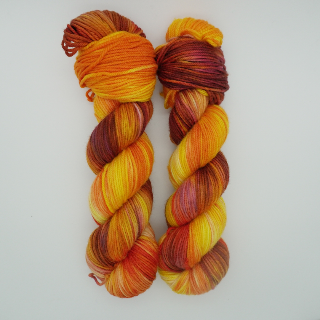 Blazing Bloom is a fiery fusion of brilliant gold, molten orange, and smoldering crimson. If you're looking for a bright golden colorway to pair with your project, this is the way to go.