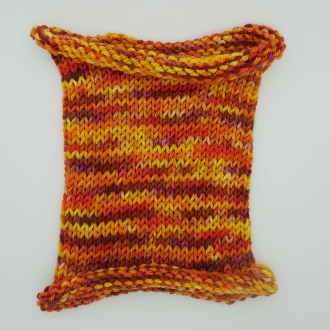 The yarn feels good in the hand and works up into a pleasing fabric. The colors are a heavenly treat for the eyes.