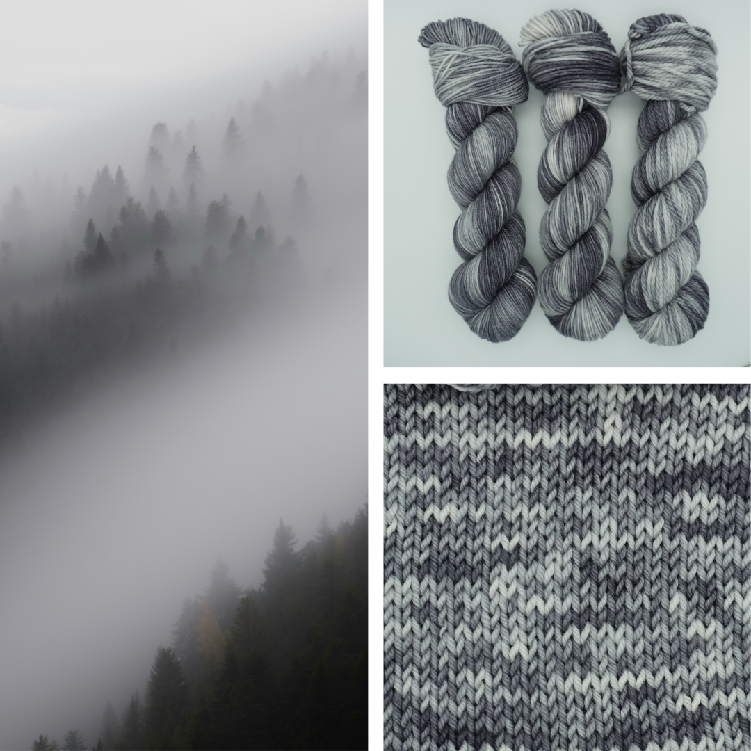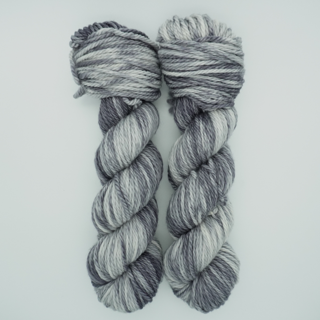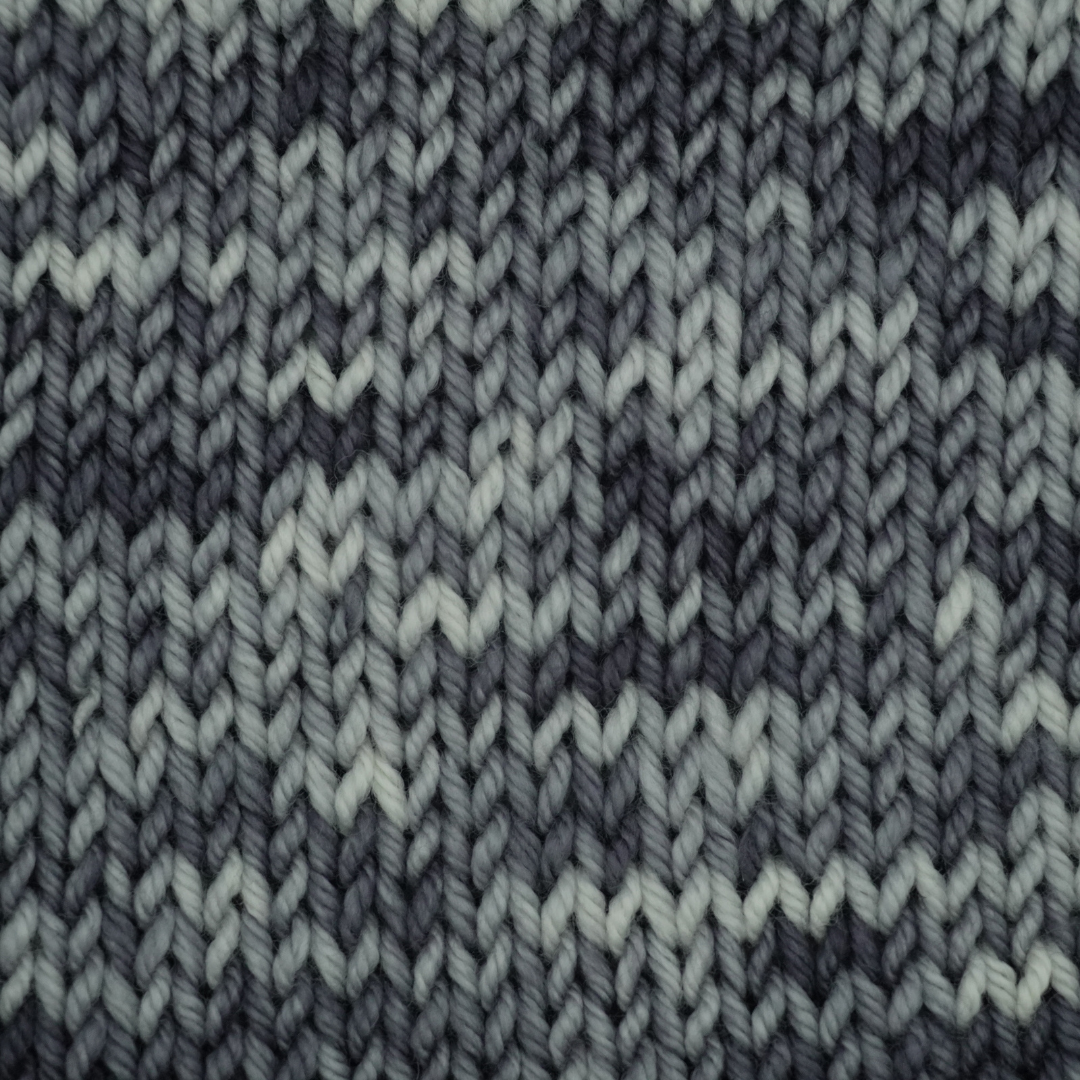 Soft as morning mist and layered in gentle greys, Cozy Fog blends smoky tones into a beautifully heathered yarn that knits up like drifting clouds over a quiet forest. This is a two-sided version of our Dust of Snow colorway. If you liked Dust of Snow, but wished there was more grey, this is the yarn for you.