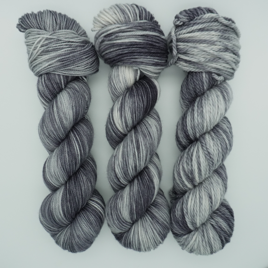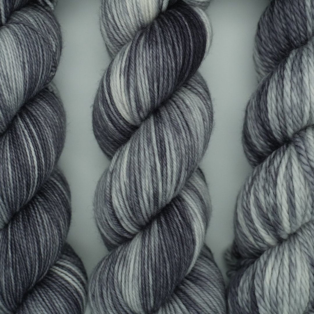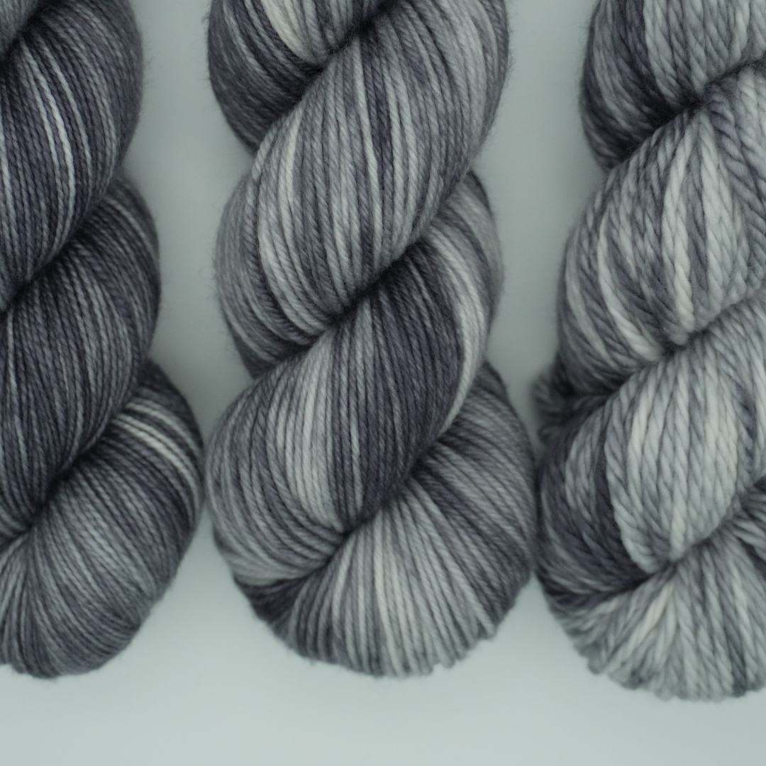 Soft as morning mist and layered in gentle greys, Cozy Fog blends smoky tones into a beautifully heathered yarn that knits up like drifting clouds over a quiet forest. This is a two-sided version of our Dust of Snow colorway. If you liked Dust of Snow, but wished there was more grey, this is the yarn for you.