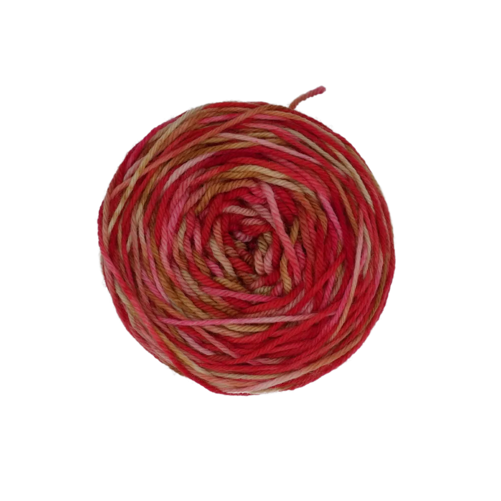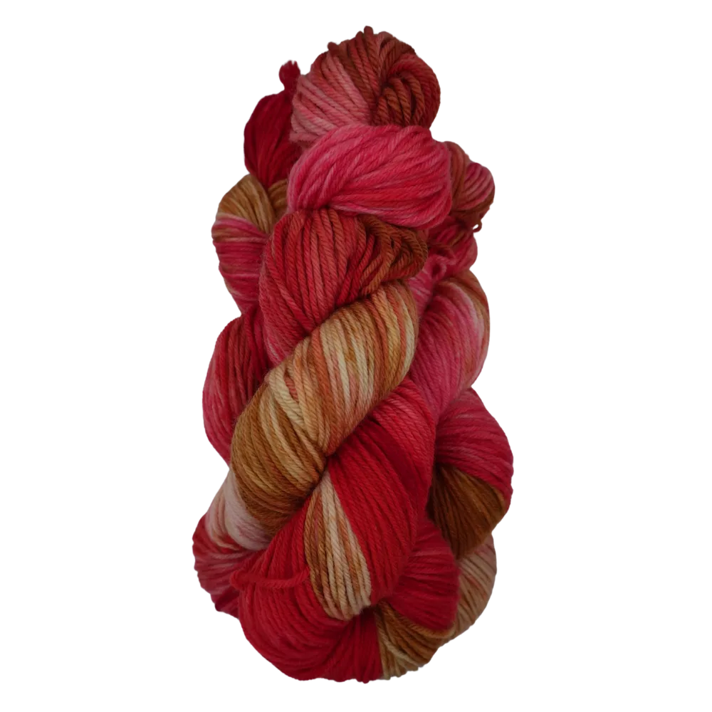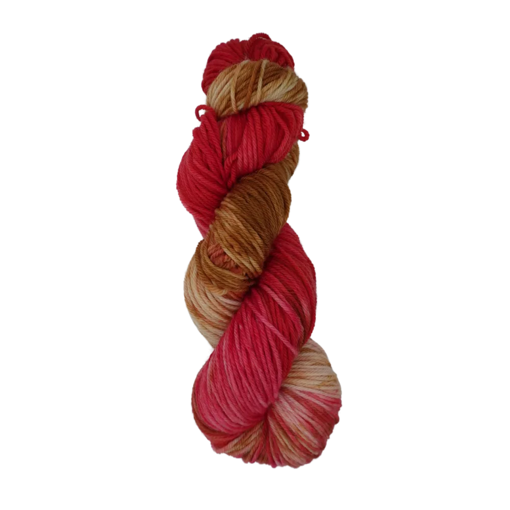 Worsted Weight 100% Superwash Merino Wool; 218 Yards; 100 Grams; 4 ply Cranberry Woods is a cozy, autumnal blend of rich reds and warm browns —like a walk through the forest with spiced cider in hand.