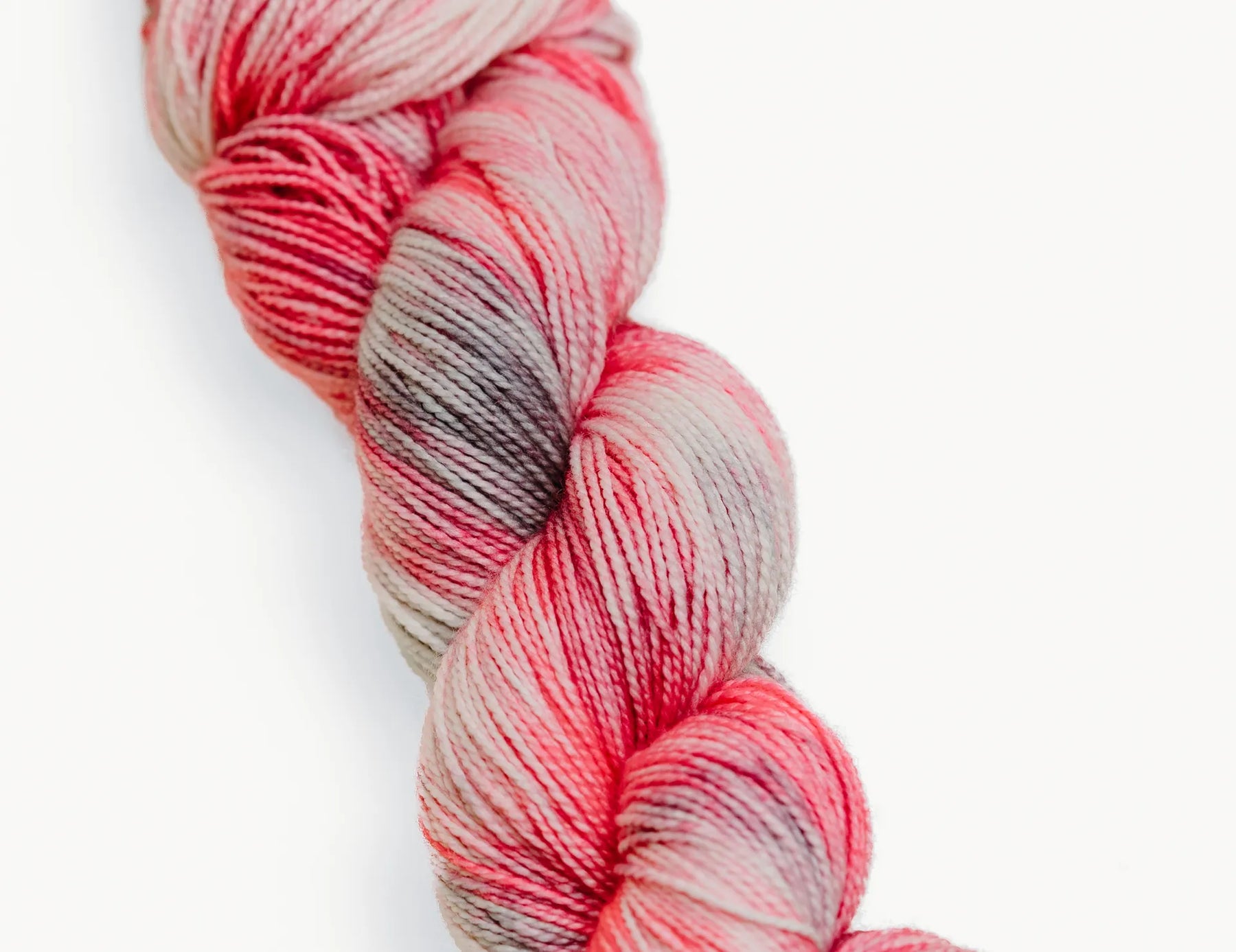 Sock Weight 80% Superwash Merino Wool 20% Nylon; 400 Yards; 100 Grams; 2ply Drenched in flamingo pinks, soft blushes, and elegant charcoal greys, this colorway is a tropical daydream spun into fiber.