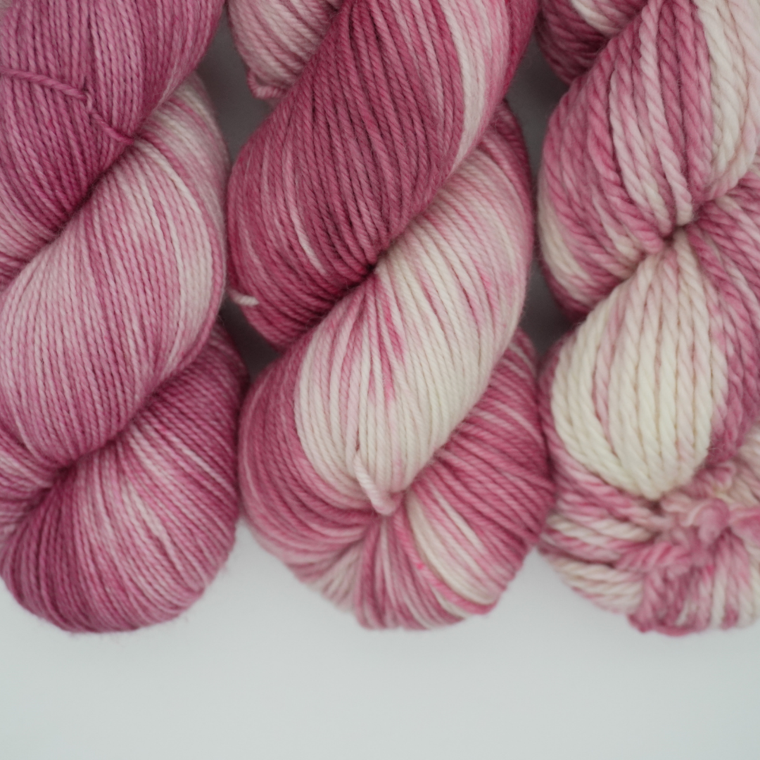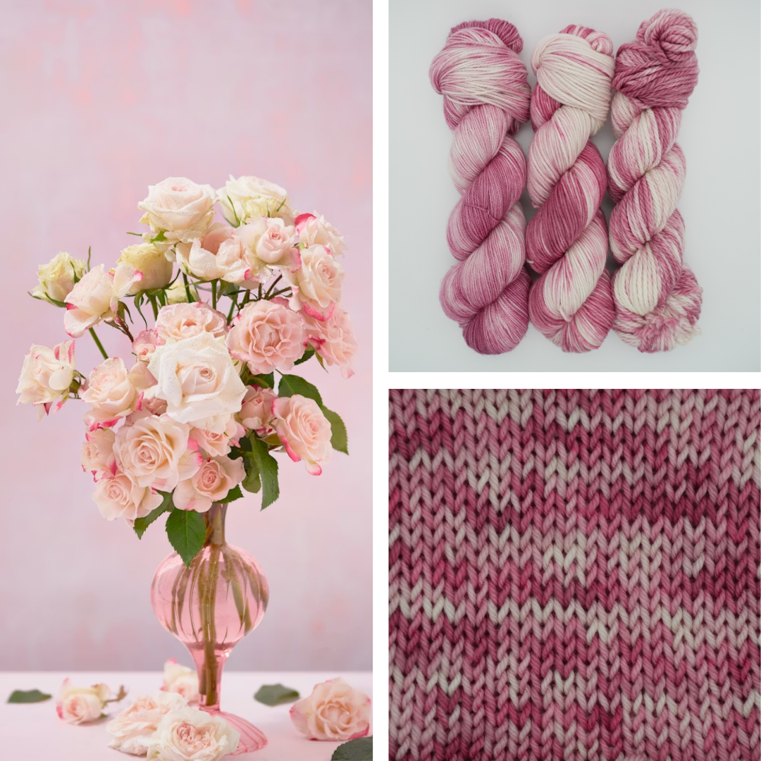 Petals & Lace is a soft and romantic colorway blending delicate blush pinks with creamy whites, inspired by the timeless elegance of fresh roses.