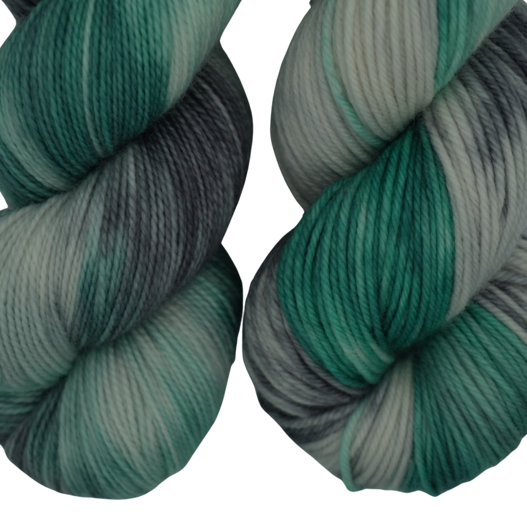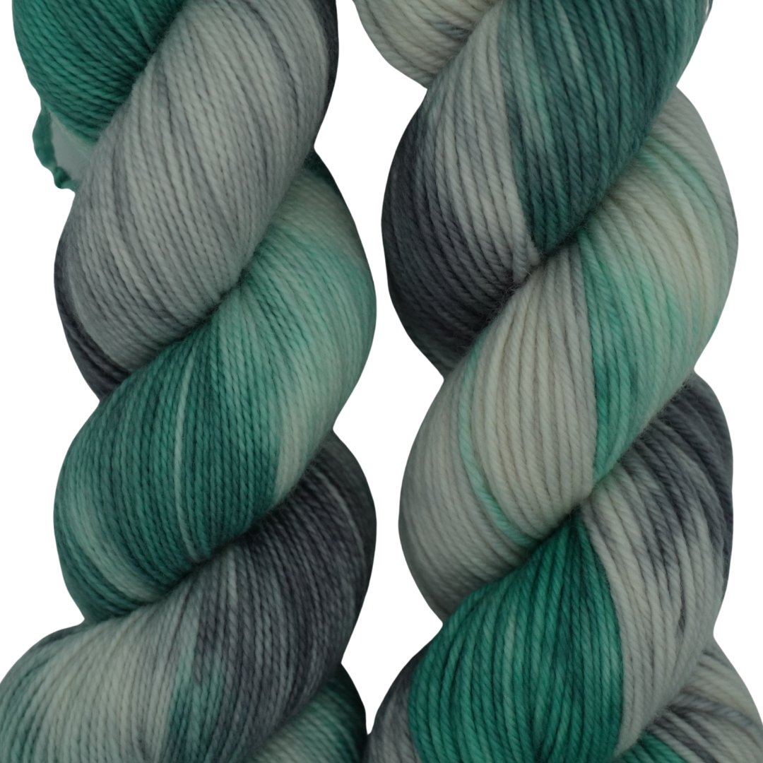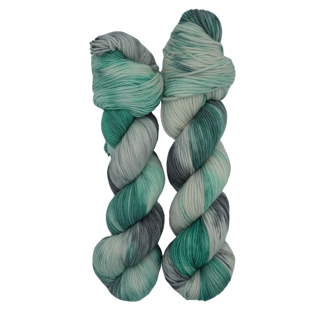 Rain Clouds is a light blend of aqua and grey on top of a white base. Its been stormy here in Alabama recently, and this colorway perfectly captures those beautiful stormy afternoons.