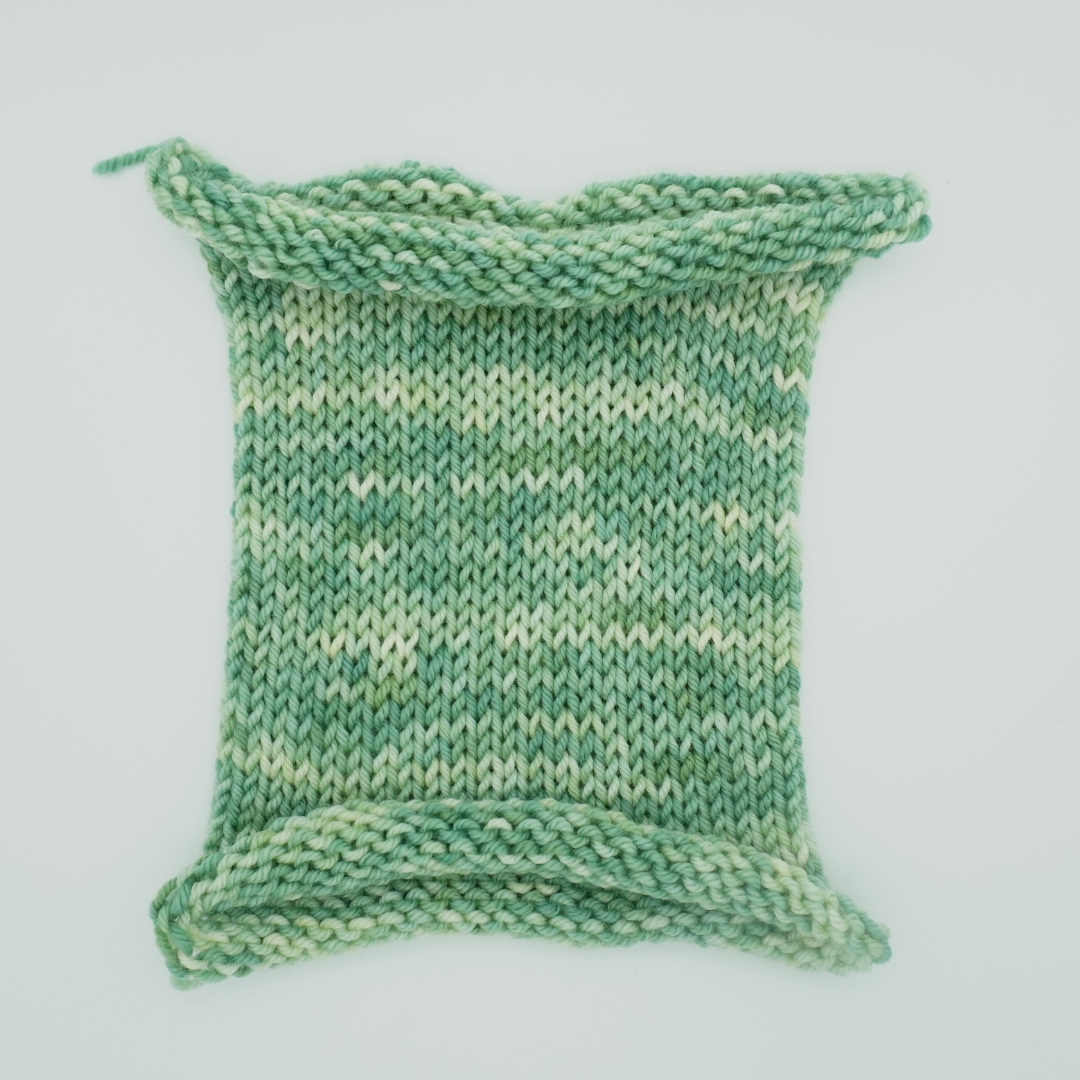 The yarn feels good in the hand and works up into a pleasing fabric. The colors are a heavenly treat for the eyes.